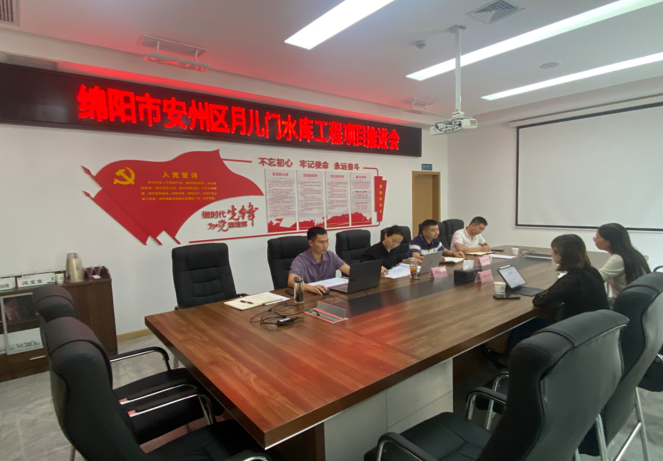 9月11日,集團(tuán)組織召開(kāi)綿陽(yáng)市安州區(qū)月兒門(mén)水庫(kù)工程項(xiàng)目推進(jìn)會(huì),會(huì)議圍繞水庫(kù)工程推進(jìn)進(jìn)度及相關(guān)工作展開(kāi)討論。黨支部委員、總經(jīng)理?xiàng)铈面脜⒓?。(素材?lái)源:項(xiàng)目安環(huán)中心 張瑞桃)