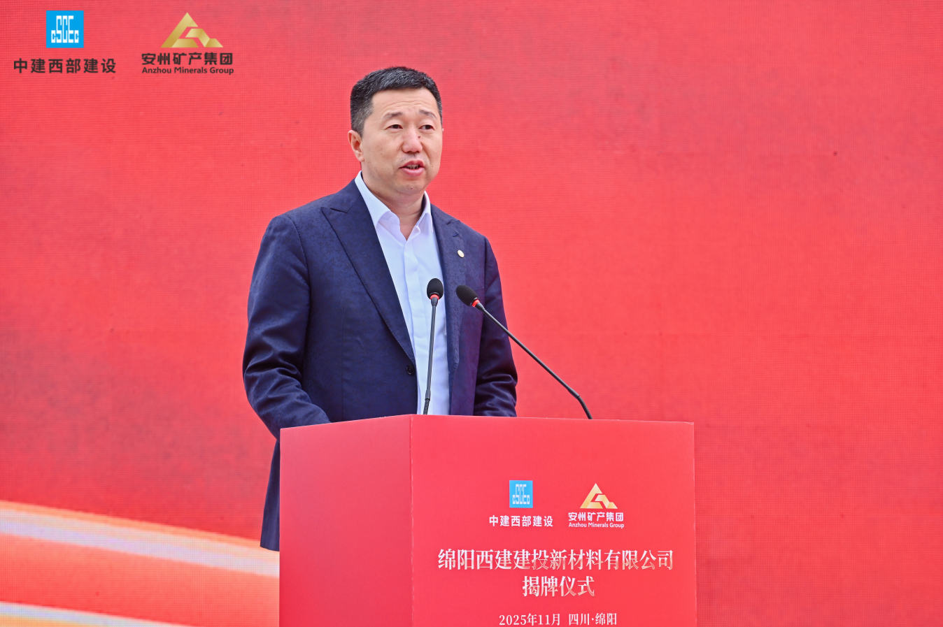 11月18日,綿陽安州礦產資源集團有限公司(簡稱“安礦集團”)與中建西部建設集團第一有限公司(簡稱“中建西部一公司”)共同出資設立的綿陽西建建投新材料有限公司(簡稱“西建建投”)在安州正式揭牌。此次揭牌是央地國企強強聯手、優(yōu)勢互補的合作典范,不僅為綿陽綠色建材產業(yè)發(fā)展與“無廢城市”建設注入強勁動力,也開啟了雙方共創(chuàng)共贏的嶄新篇章。中建西部一公司黨委書記、董事長徐志飛,安礦集團黨支部書記、董事長袁波出席揭牌儀式并致辭。