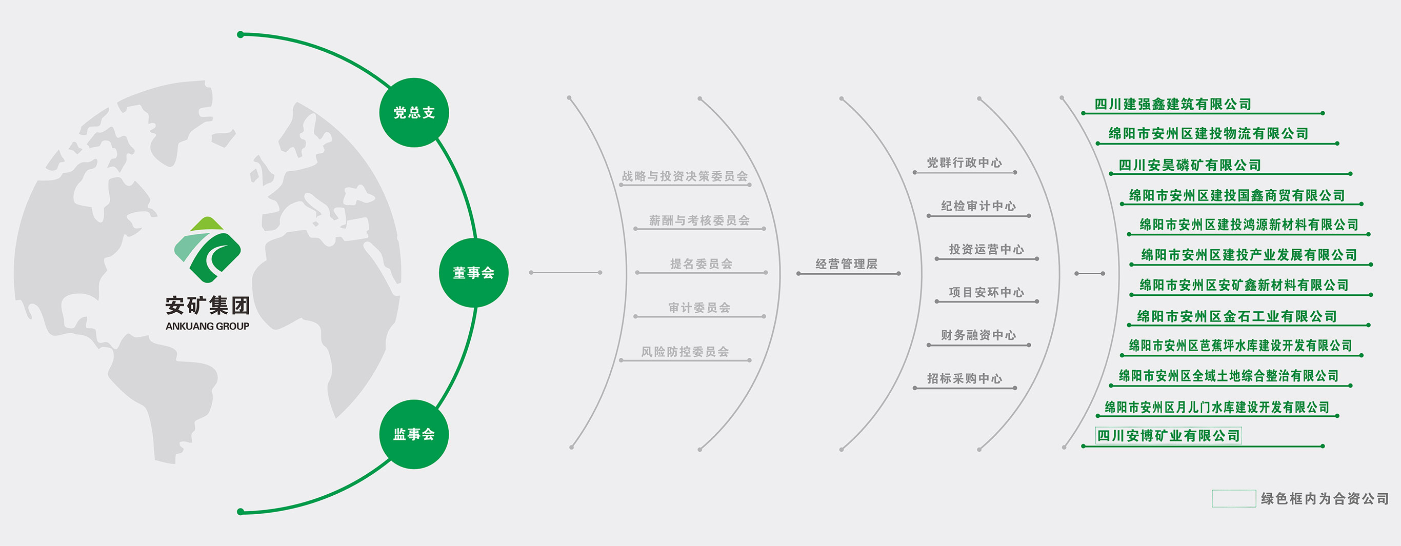 綿陽安州礦產(chǎn)資源集團有限公司(原綿陽市安州區(qū)建投礦業(yè)有限公司,以下簡稱“安州礦產(chǎn)集團”)成立于2020年6月,是經(jīng)區(qū)委、區(qū)政府批準設立,區(qū)國資辦直接監(jiān)管的一級區(qū)屬國有獨資企業(yè),注冊資本金2億元。集團內(nèi)設6個職能中心,下設11家全資子公司和1家合資公司,現(xiàn)有員工60余人,黨員30余人。